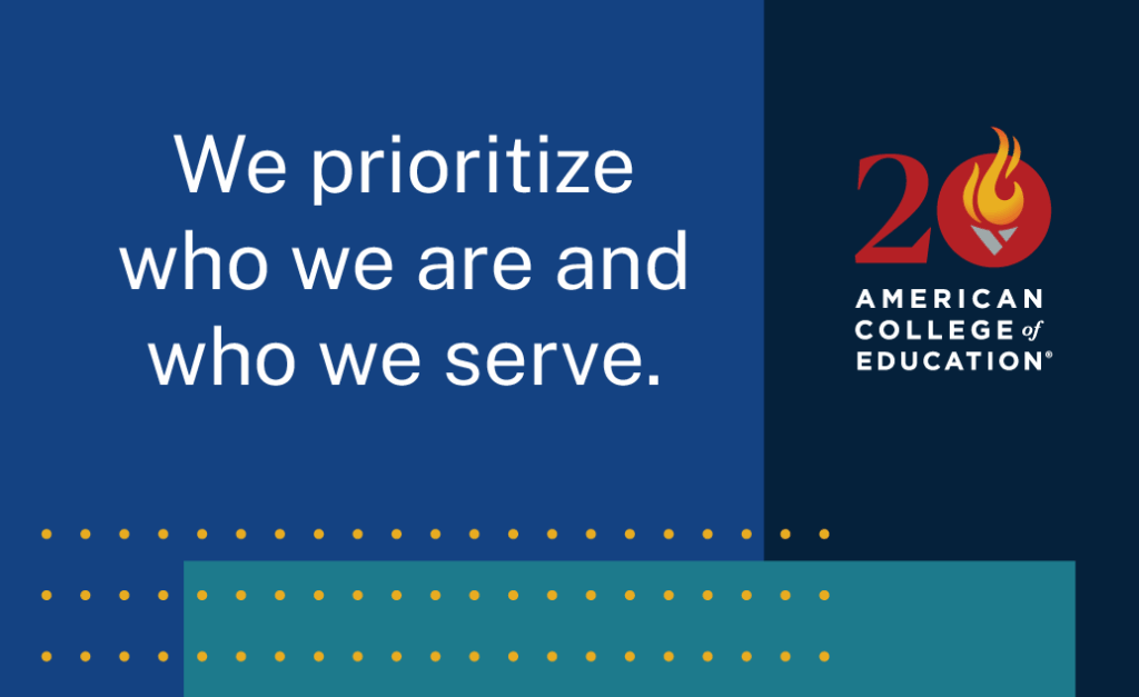 American College of Education (ACE) was built on a core mission to serve those who serve, with an origin story of offering educators affordable, accessible and quality education when it was hard to come by. Fast forward to today, 20 years since then, and this mission has grown into an unwavering commitment to social responsibility and making a difference in everything we do.